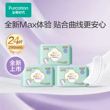 Purcotton全棉时代 奈丝公主 超净吸卫生巾 超长夜用 420mm*3片入