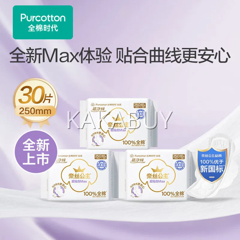 Purcotton全棉时代 奈丝公主 超净吸 超贴合Max 消毒级卫生巾 250mm 10片