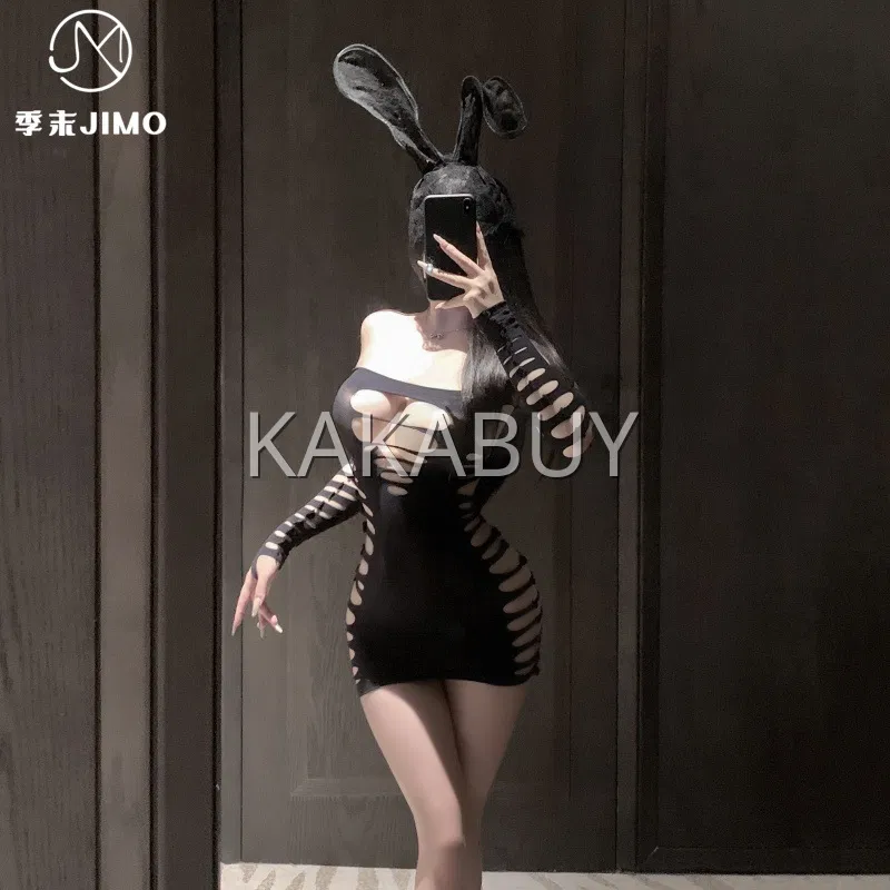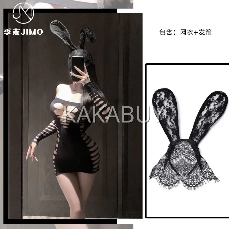 季末 一字肩连体衣套装 W13+8001黑丝袜+T19黑发箍