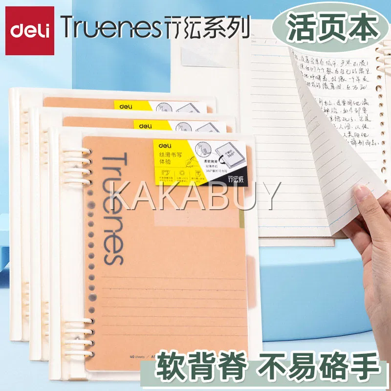Deli得力 轻薄自由翻三孔活页本 40张 颜色随机 多款选