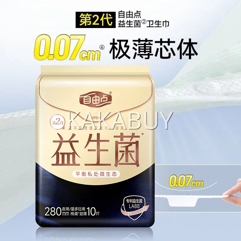 自由点 益生菌系列 超薄棉柔卫生巾 夜用/量多日用 280mm 7片