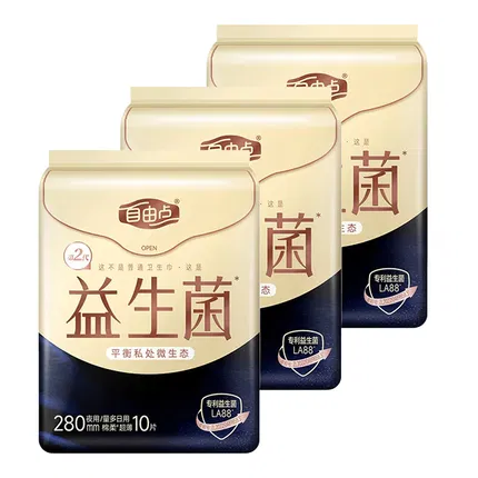 【3包】自由点 益生菌卫生巾 夜用/量多日用 第2代 280mm 10片*3包
