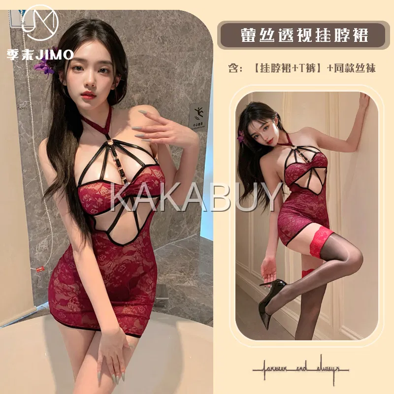 季末 纯欲蕾丝吊带睡裙 红色 9081