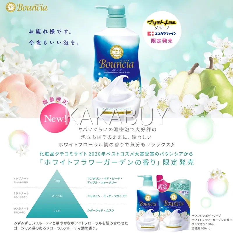 【限定】日本COW牛乳石碱 Bouncia浓密泡沫沐浴乳 茉莉雪梨香 480ml
