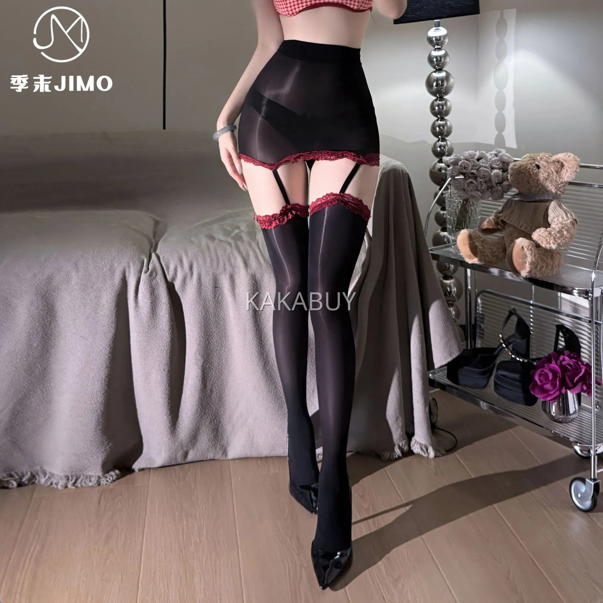 季末 油亮透身连体衣 9039+A69-2黑油光袜