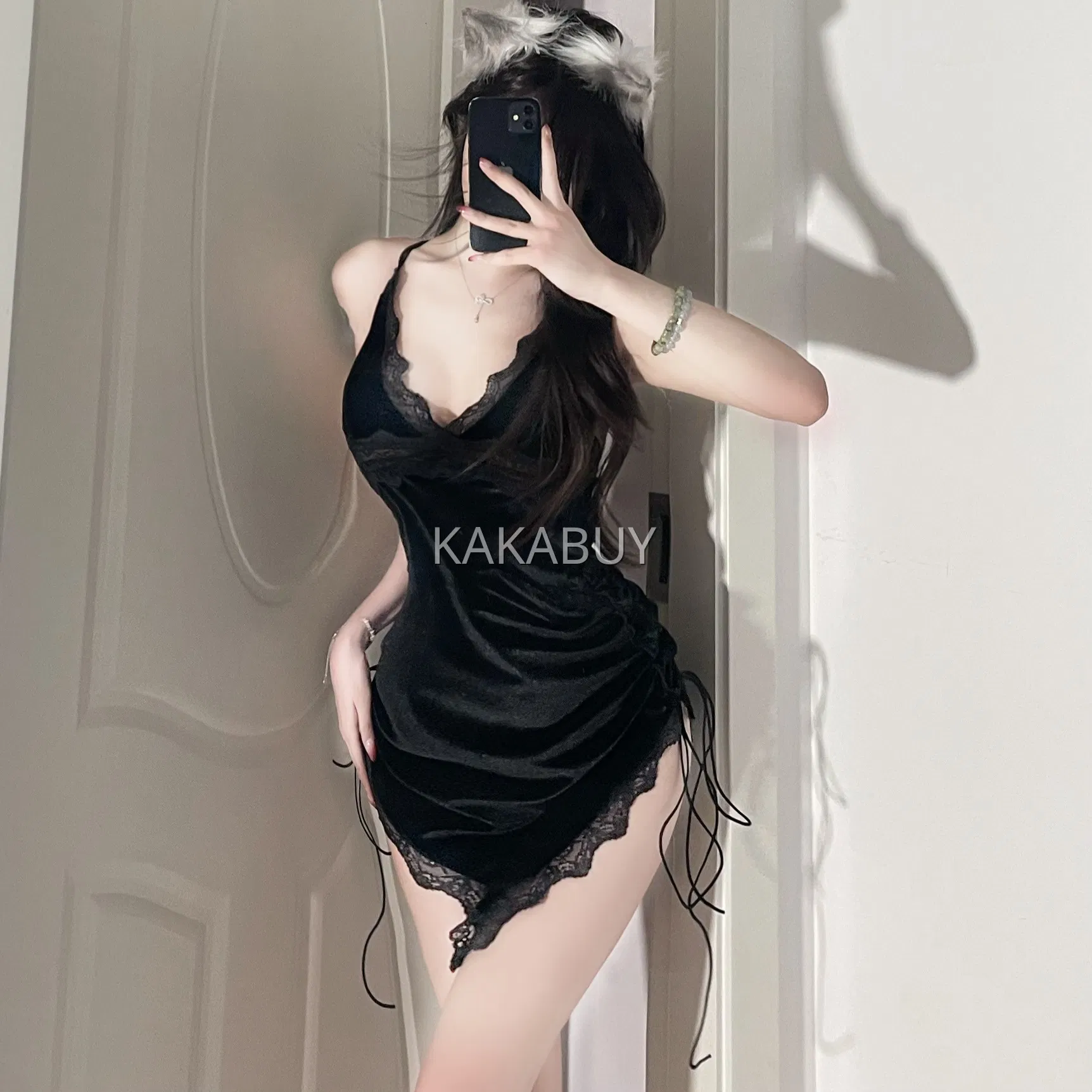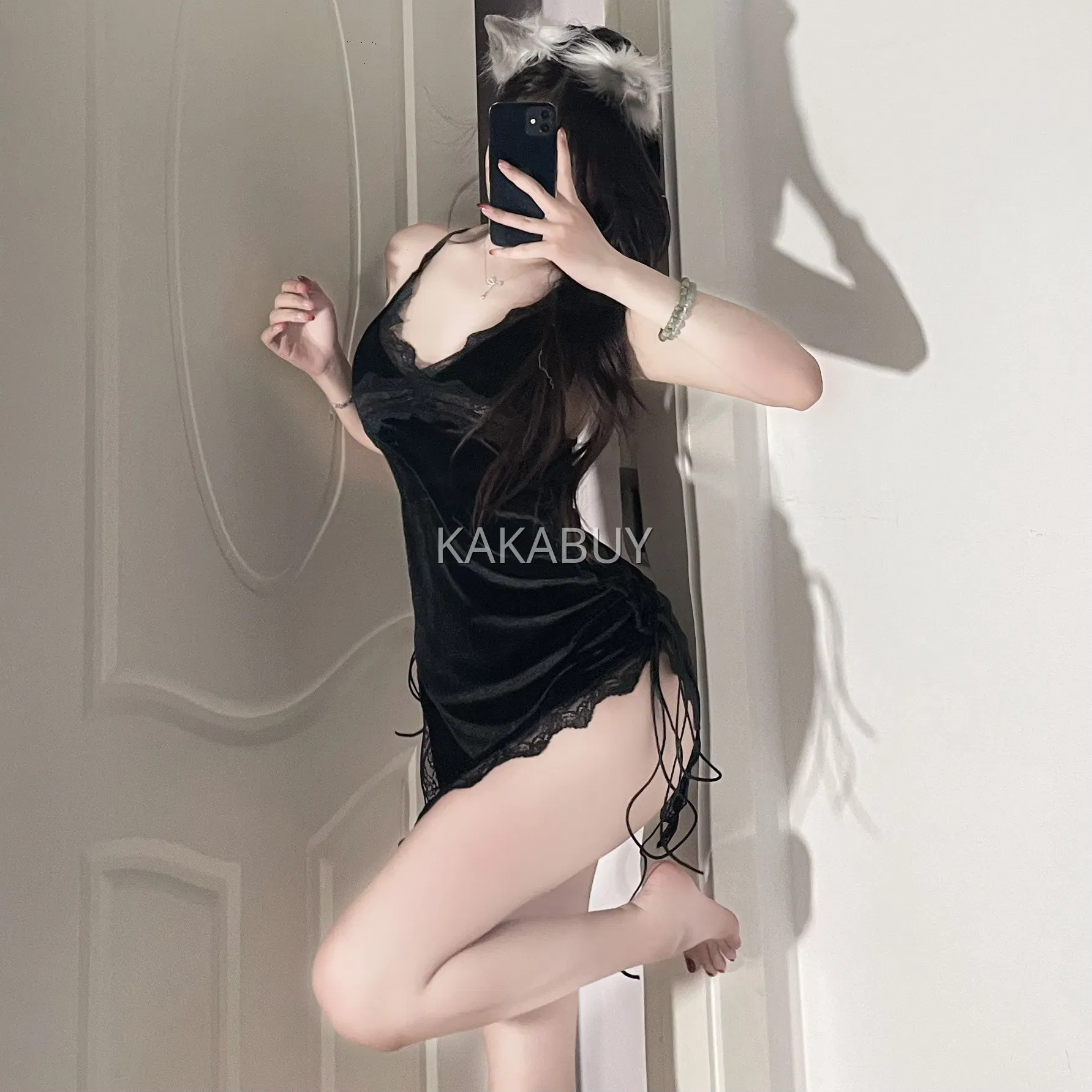 季末 纯欲挂脖连体衣 6055+A14黑内裤+8001黑丝袜