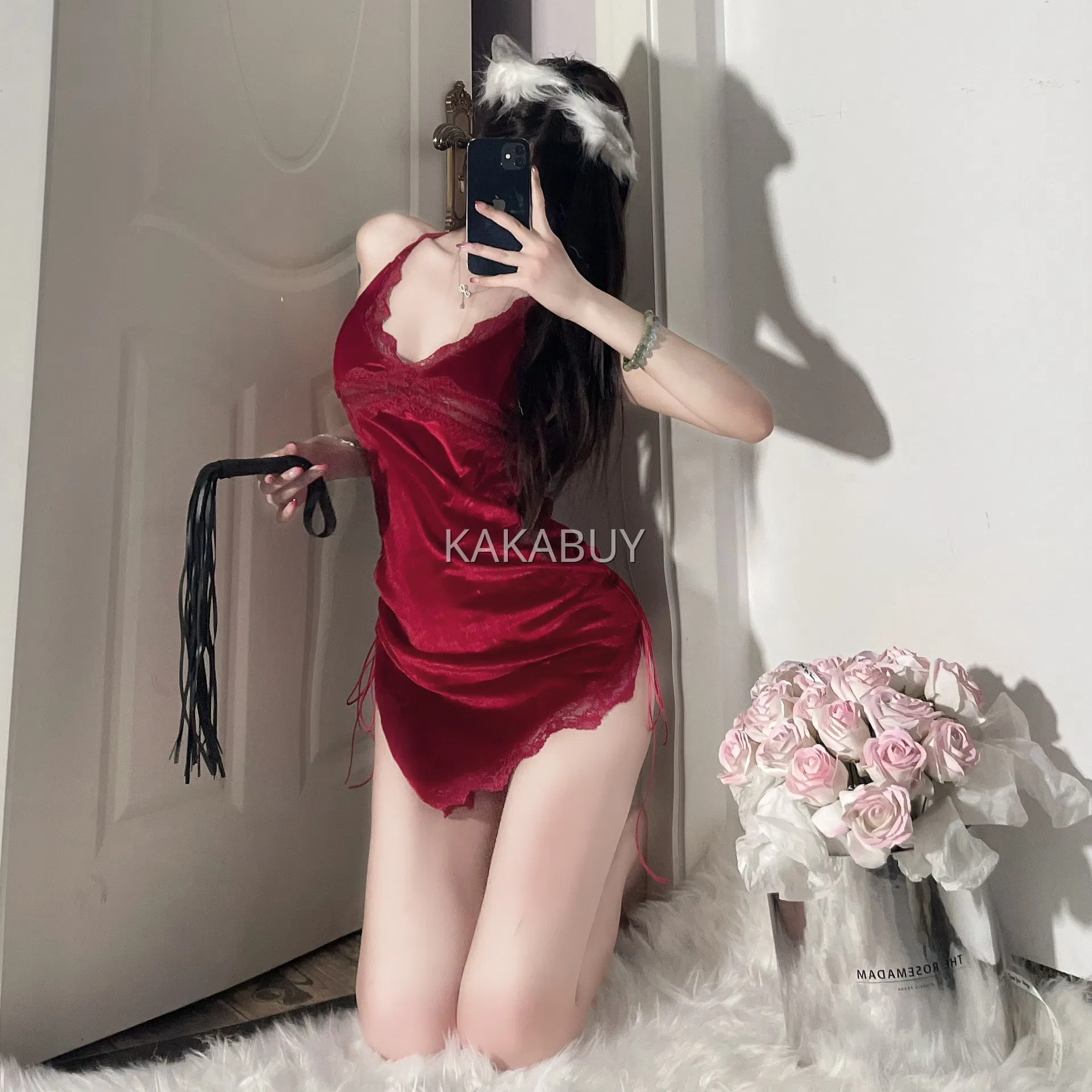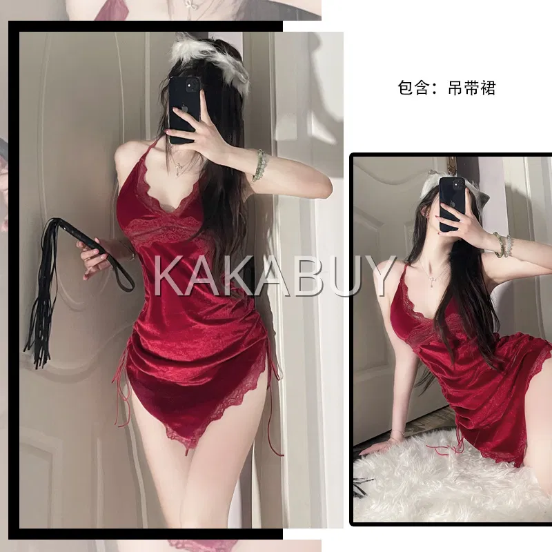 季末 纯欲蕾丝吊带睡裙 红色 9081