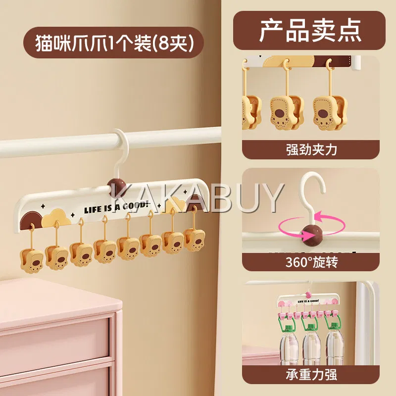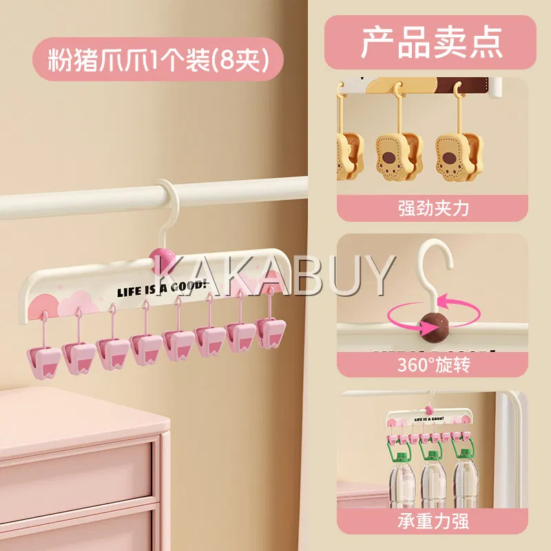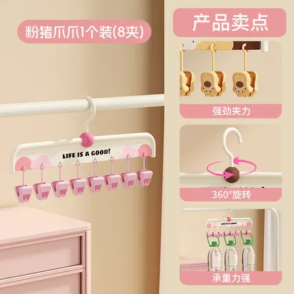 【2个】川岛屋 动物爪爪晾衣架 8夹 粉猪爪爪+猫咪爪爪