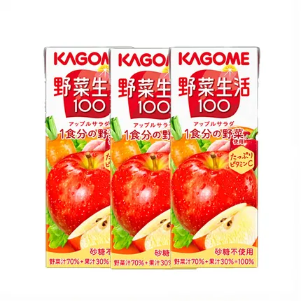 【3盒】日本KAGOME可果美 野菜生活100 混合果蔬汁 苹果沙拉 200ml*3盒