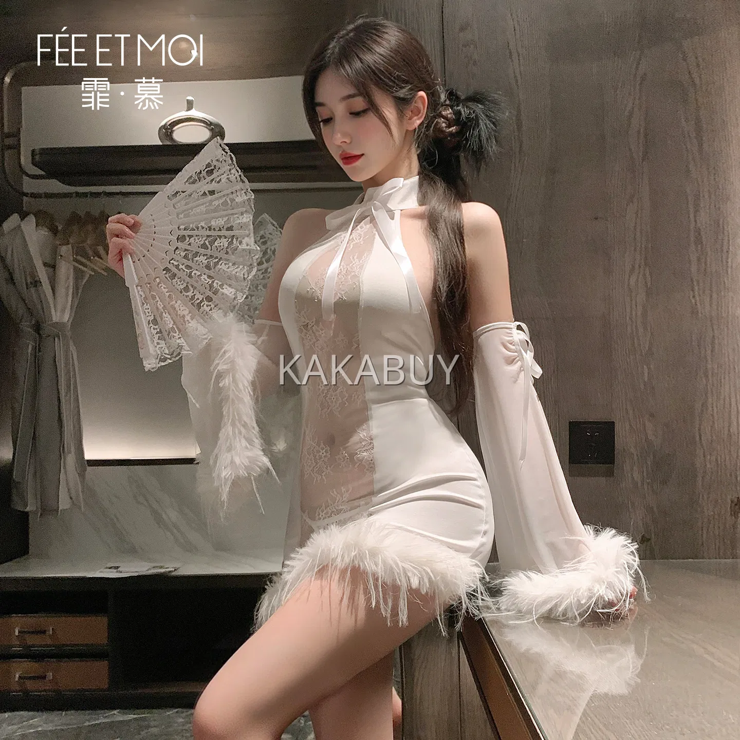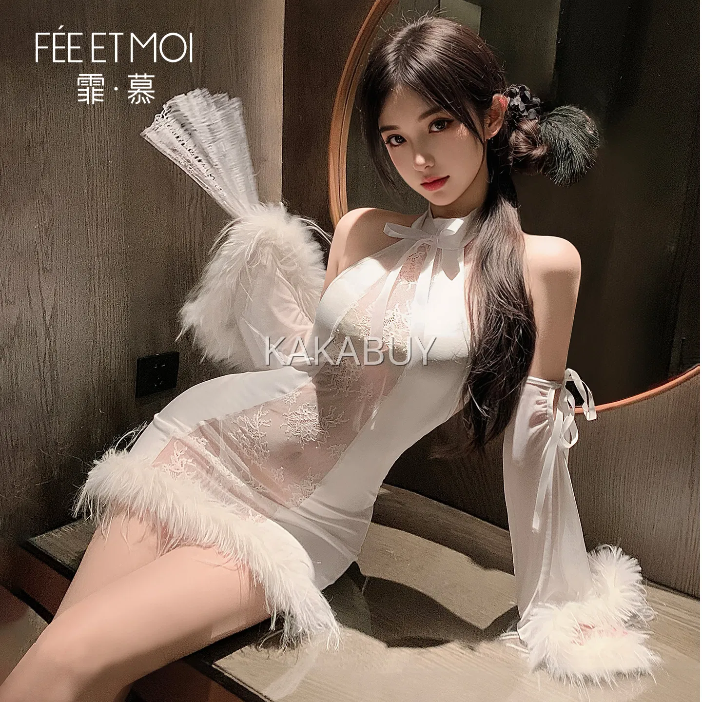 霏慕 纯欲风花边饰颈分体套装 6759 不含丝袜