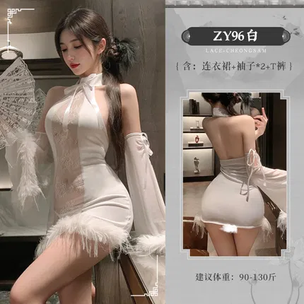 霏慕 娇柔腰姬高开绑带旗袍 ZY134+7202白长筒网袜