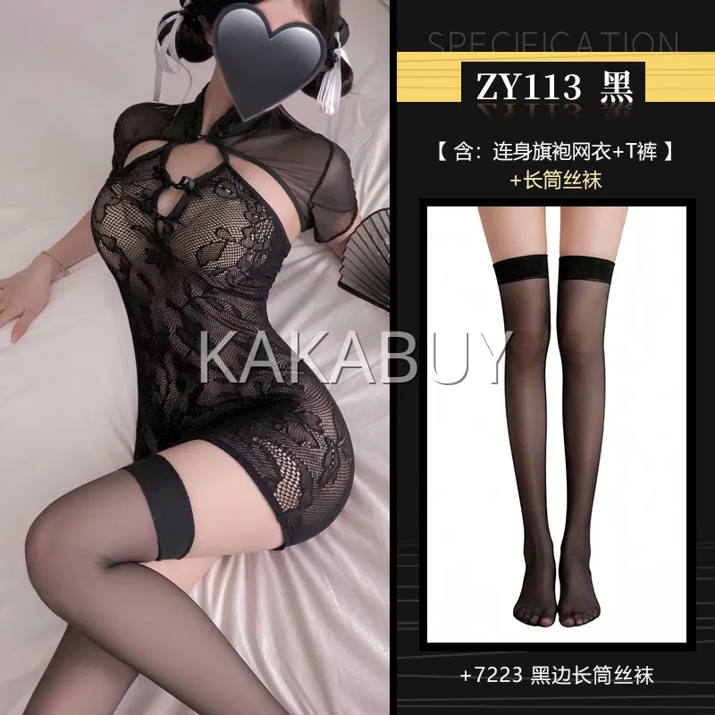 霏慕 鎏金岁月中式绑带旗袍 ZY138+7346黑紫吊带袜