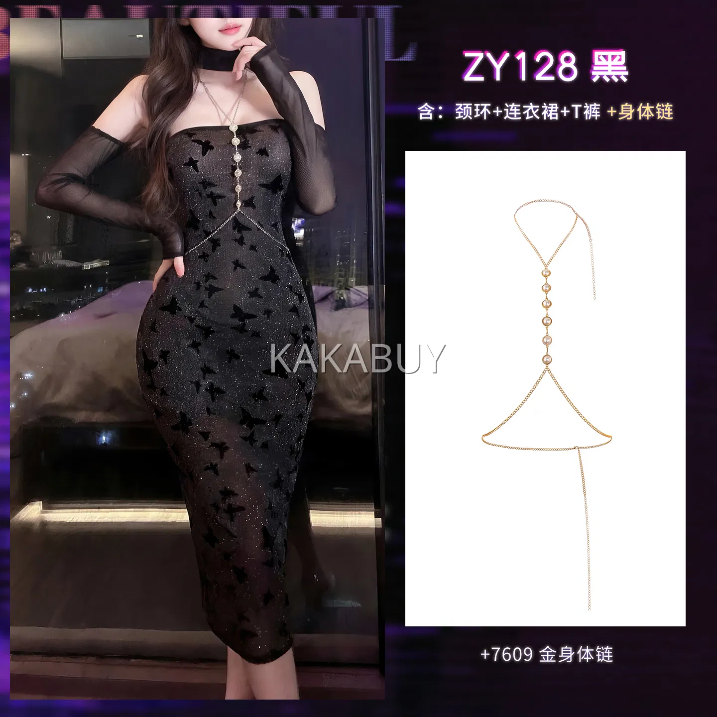 霏慕 午夜潮夕透胸裸背连衣裙 ZY43 不含丝袜