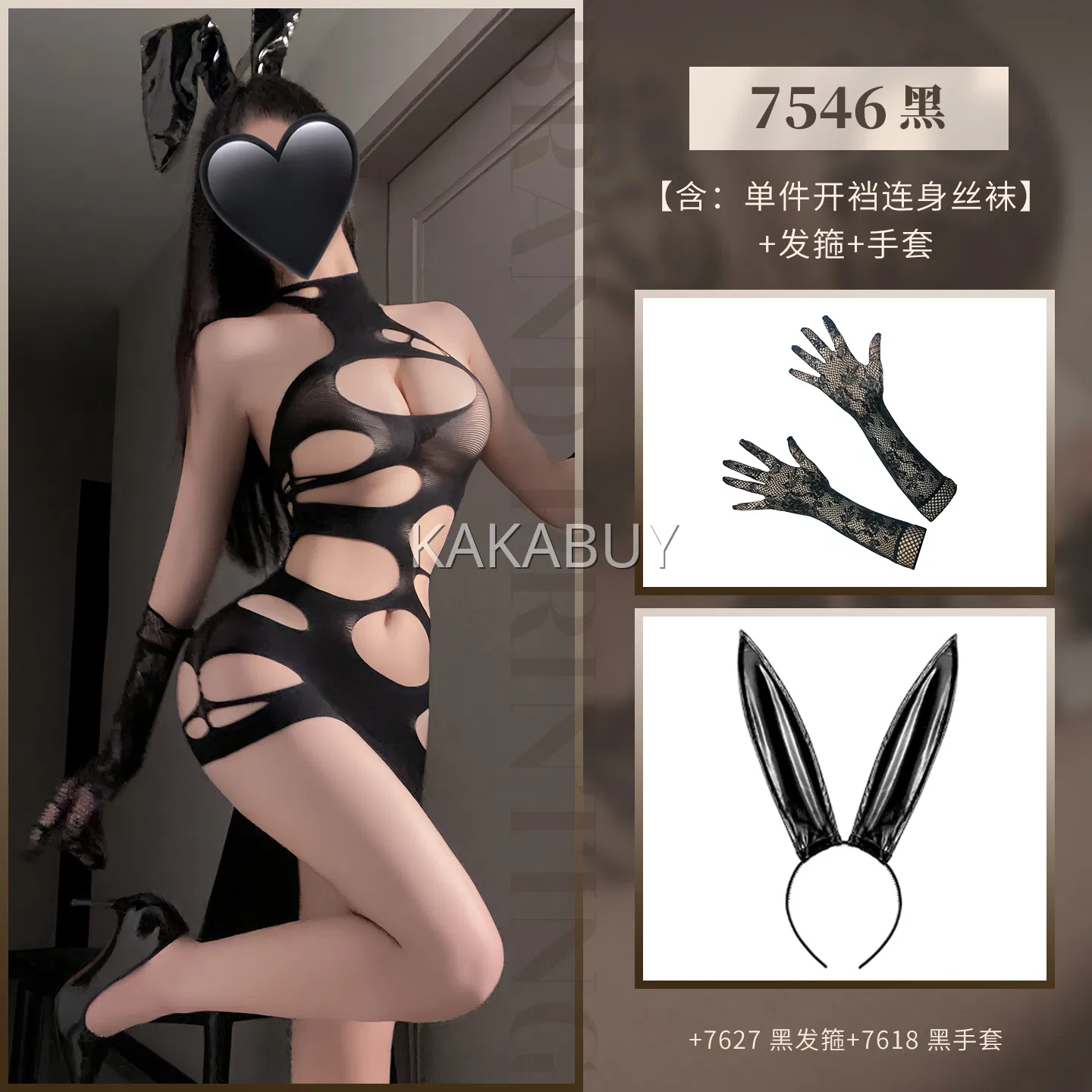 霏慕 热辣开裆兔子教官套装 6411+7627黑兔耳发箍