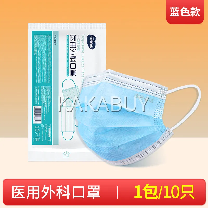 【5包】海氏海诺 一次性使用医用外科口罩 蓝色款 10只*5包