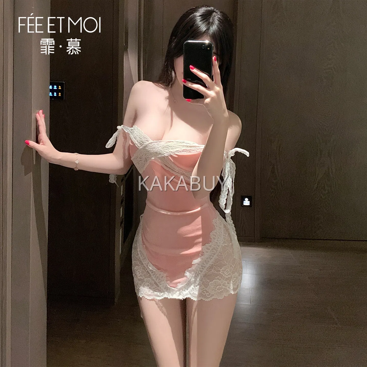 霏慕 水溶蕾丝法式吊带睡裙 6534 多色选