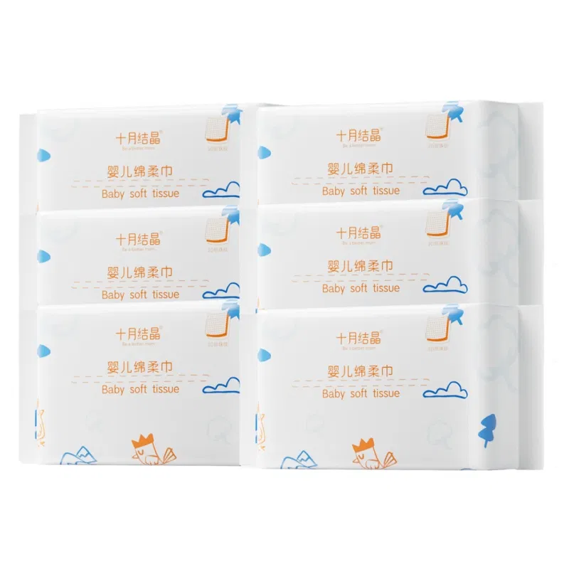 【1提·6包】十月结晶 婴儿纯棉柔巾150*200mm 100抽/包*6