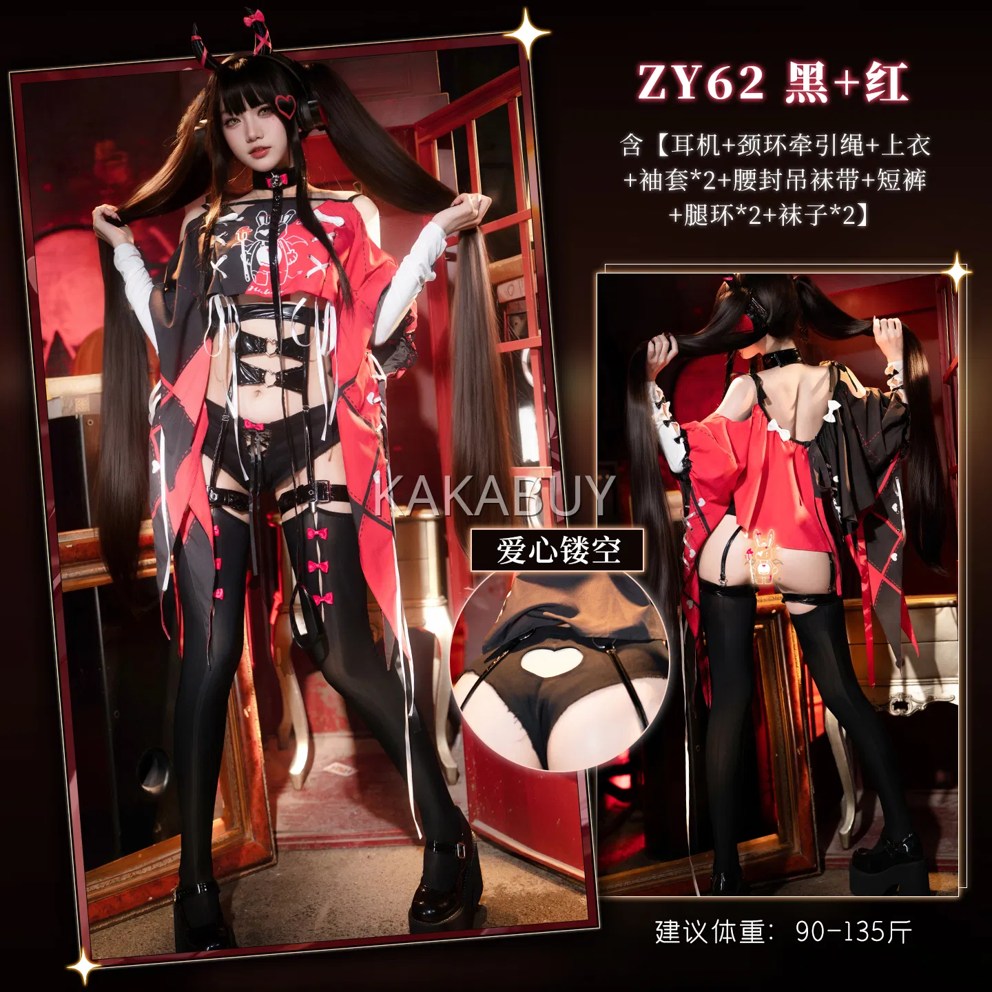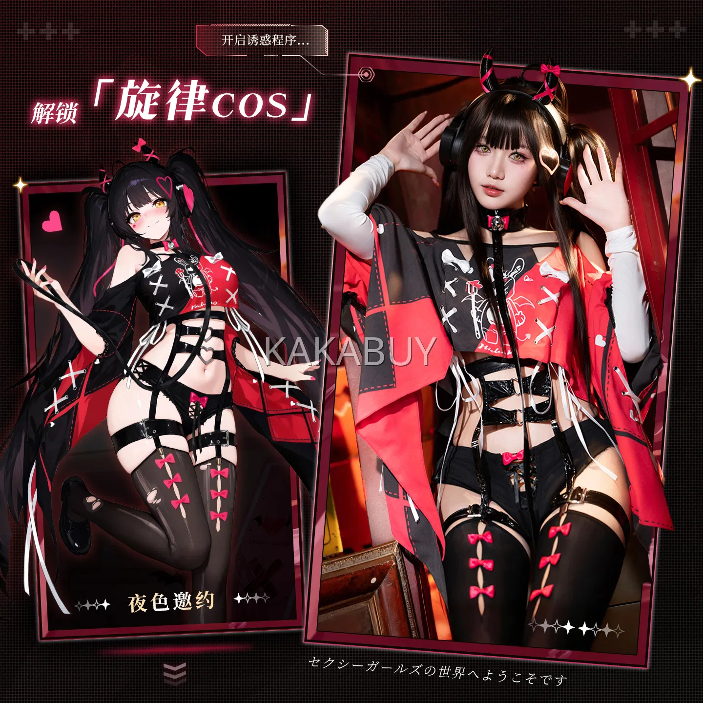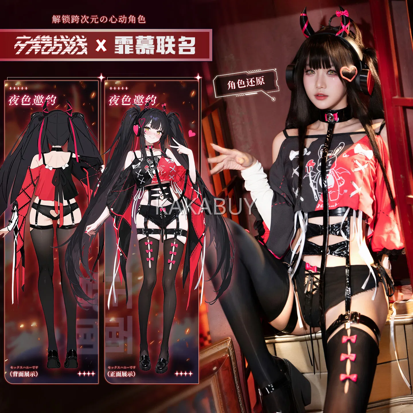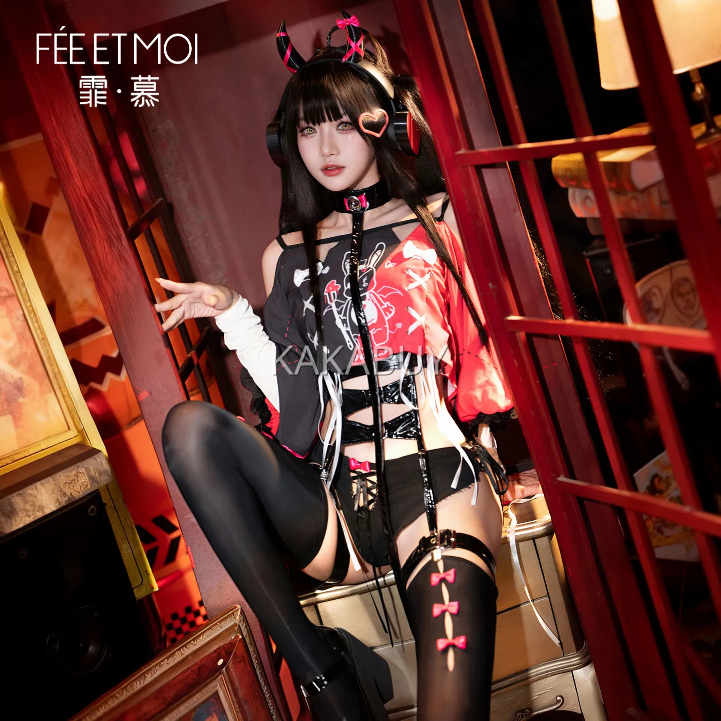 霏慕 热辣开裆兔子教官套装 6411+7627黑兔耳发箍