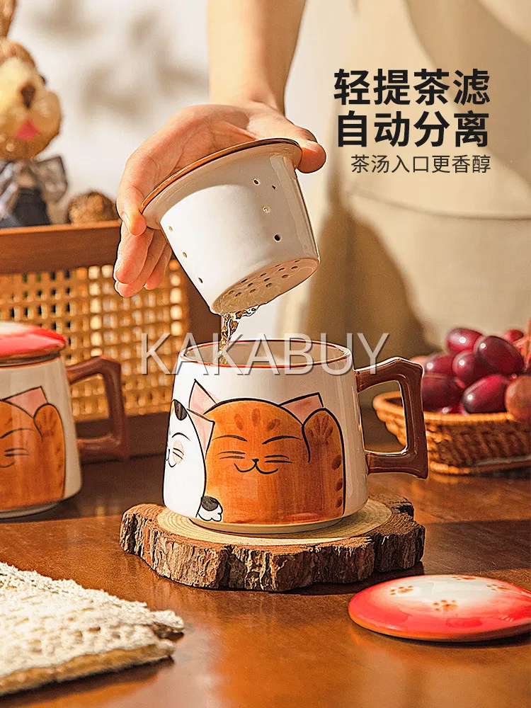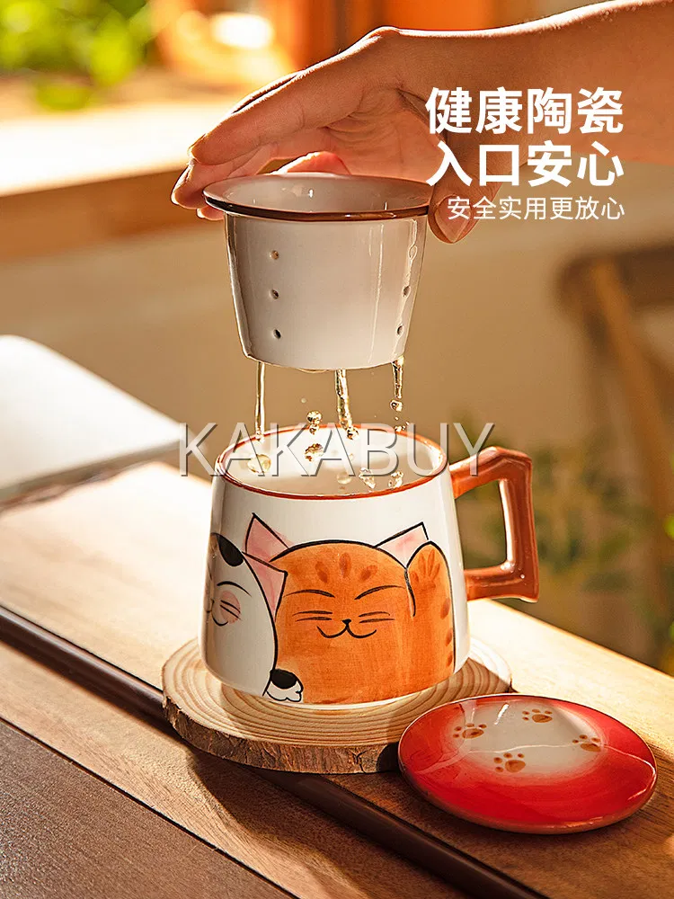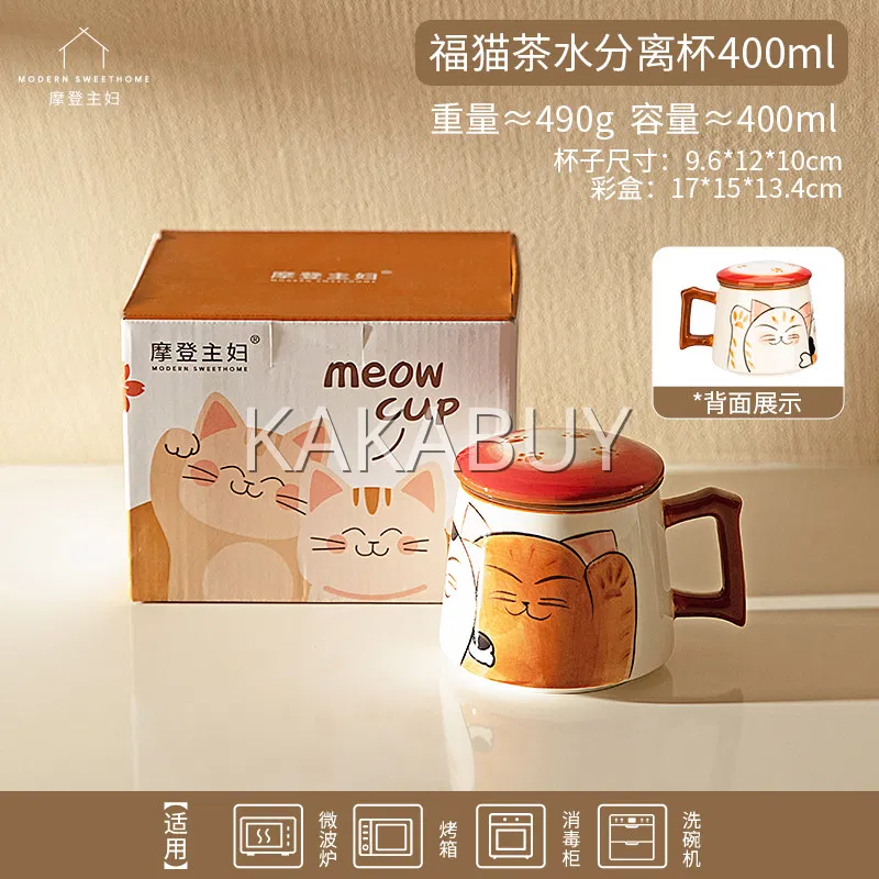 摩登主妇 萌趣鲷鱼猫带盖马克杯 380ml 多款选