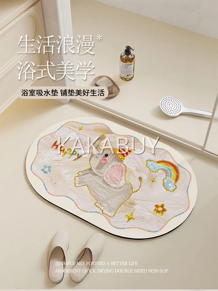 朴尚 异形浴室吸水地垫 #花暖白