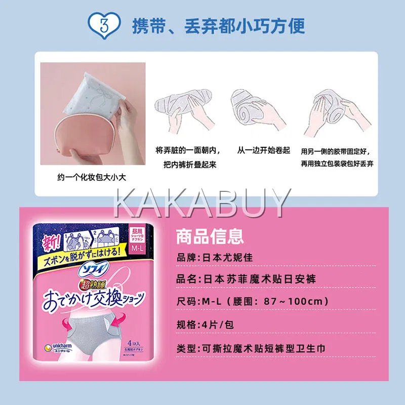 日本UNICHARM尤妮佳 Sofy苏菲 超熟睡魔术贴日安裤 M-L码 4枚