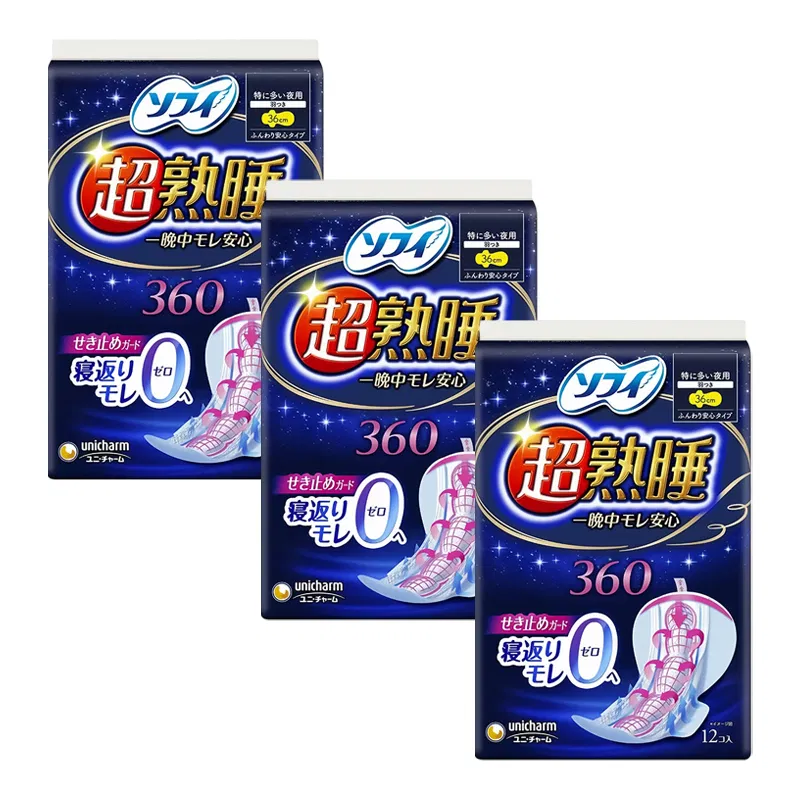 【3包】日本UNICHARM尤妮佳 sofy苏菲 超熟睡极厚系列 卫生巾 量特多夜用 36cm*12片*3包入