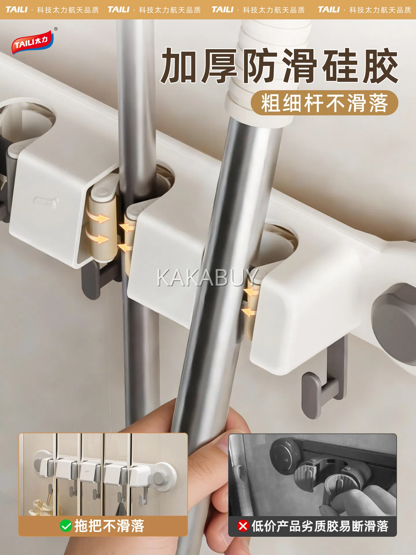 TAILI太力 多功能吸盘拖把挂钩 月光白
