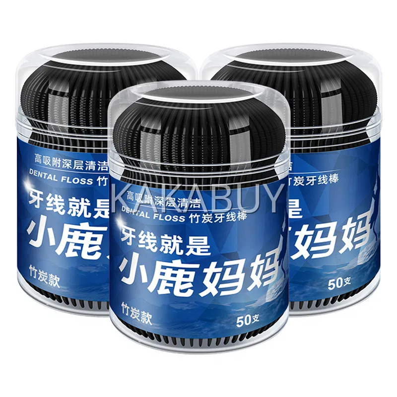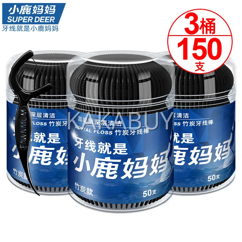 【3桶】SUPER DEER小鹿妈妈 竹炭牙线棒 单线 青年款 50支*3桶