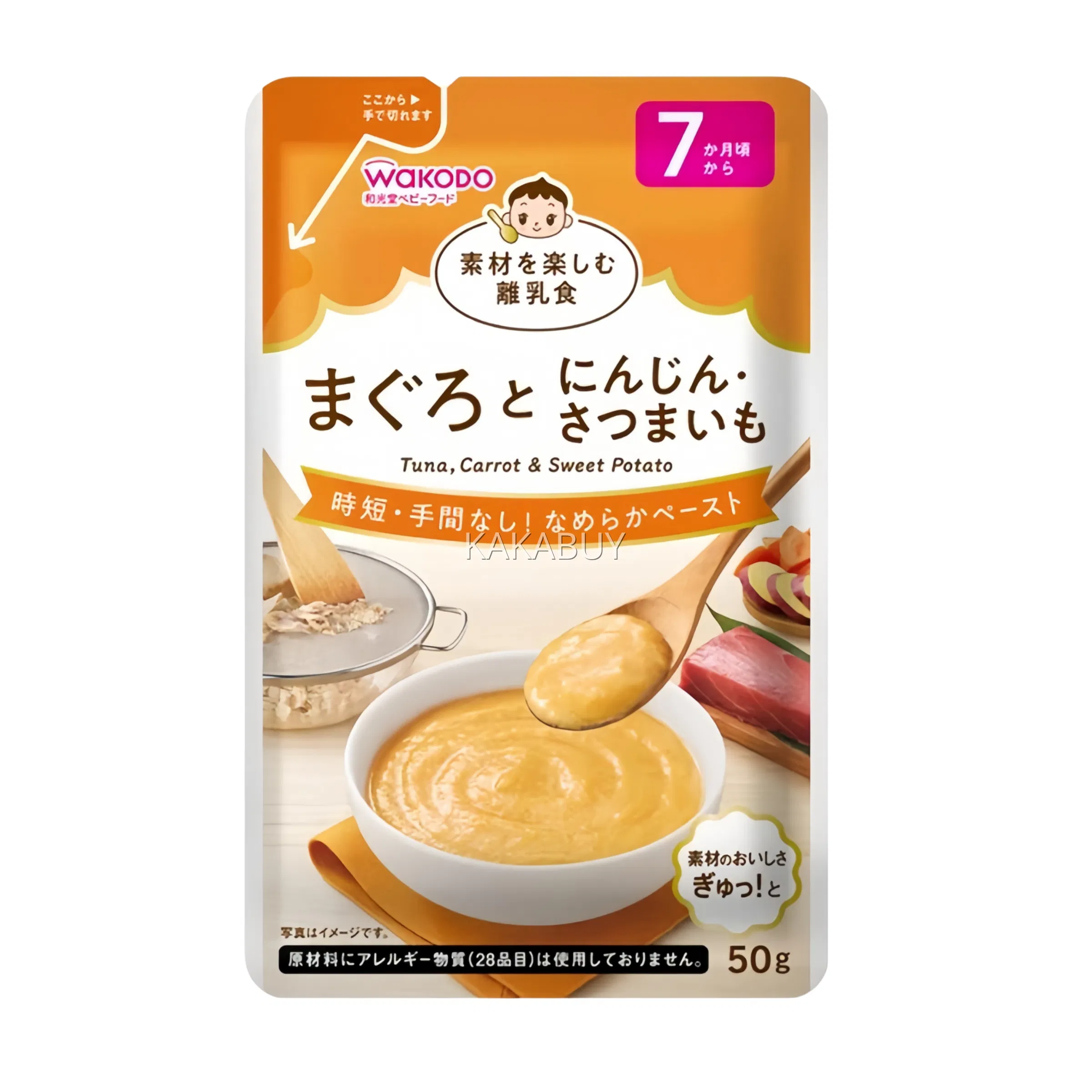 【2袋】日本WAKODO和光堂 宝宝即食辅食 金枪鱼胡萝卜红薯泥 7个月以上 50g*2袋