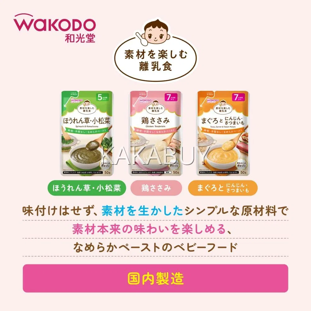 日本WAKODO和光堂 鸡肉菠菜泥 7个月以上 3个入