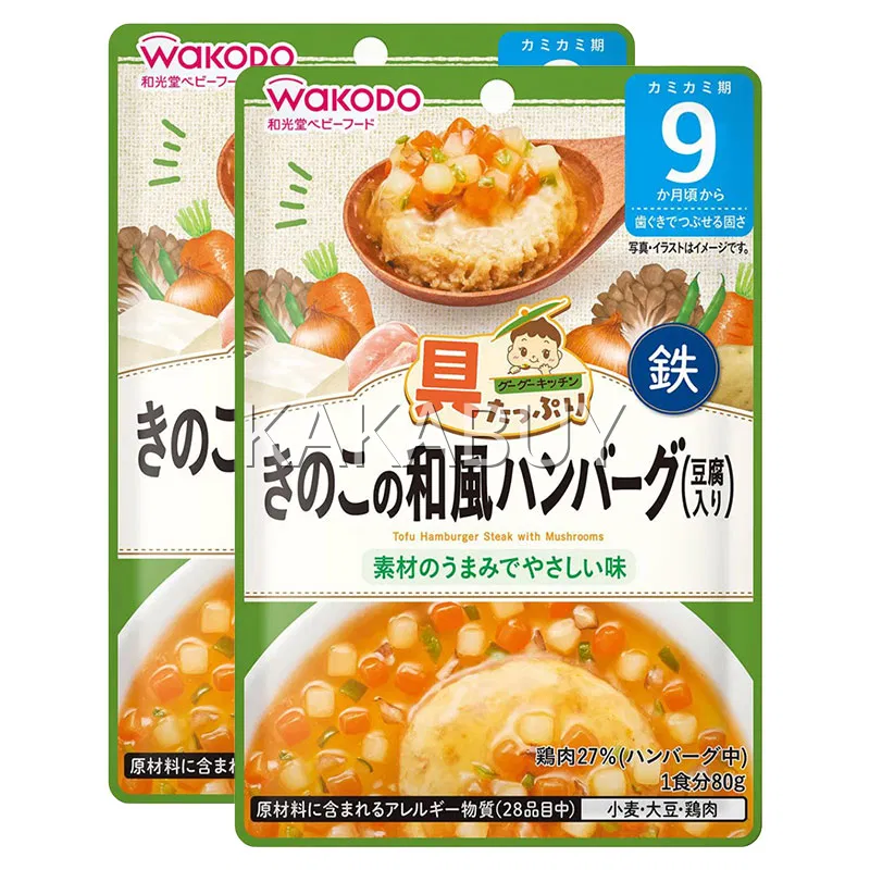 日本WAKODO和光堂 宝宝即食辅食 蘑菇和风豆腐汉堡排盖浇 9个月以上 80g