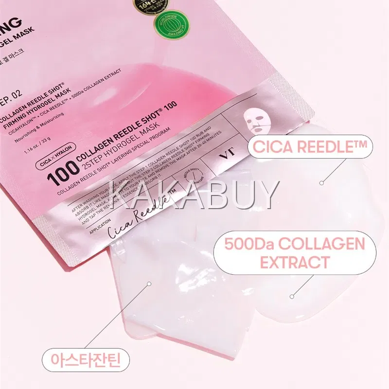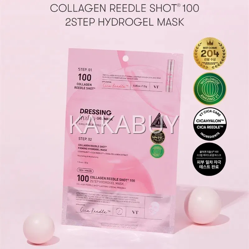【4片】韩国VT Collagen Reedle Shot 100 胶原蛋白微晶精华两部曲水凝胶面膜 4片入