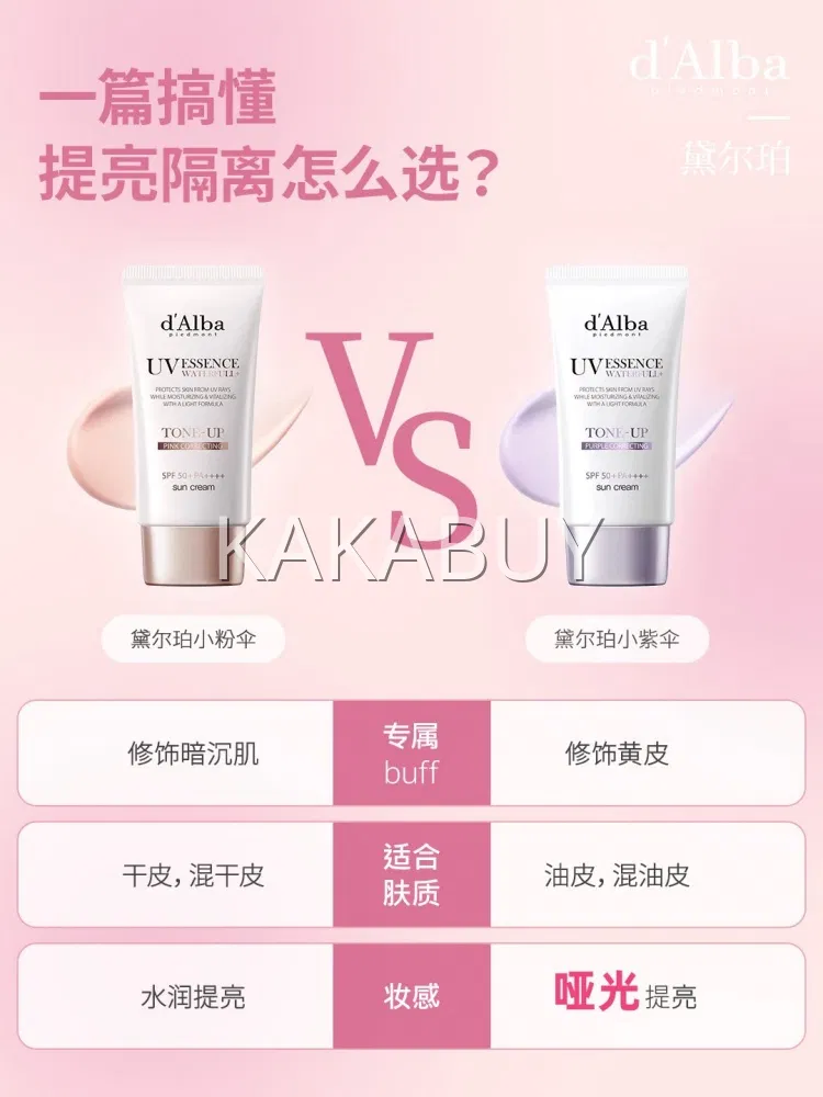 【2支】韩国d'Alba黛尔珀 水润提亮粉色防晒霜套装 SPF50+ PA++++ 50ml*2+20ml
